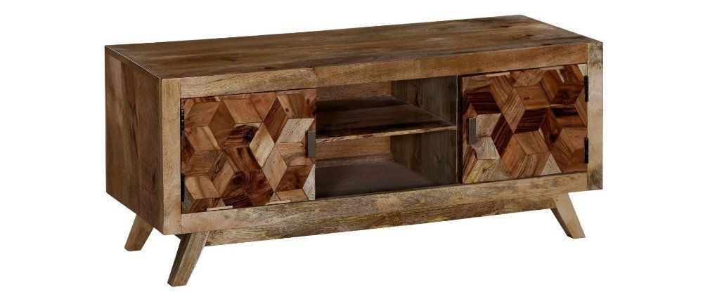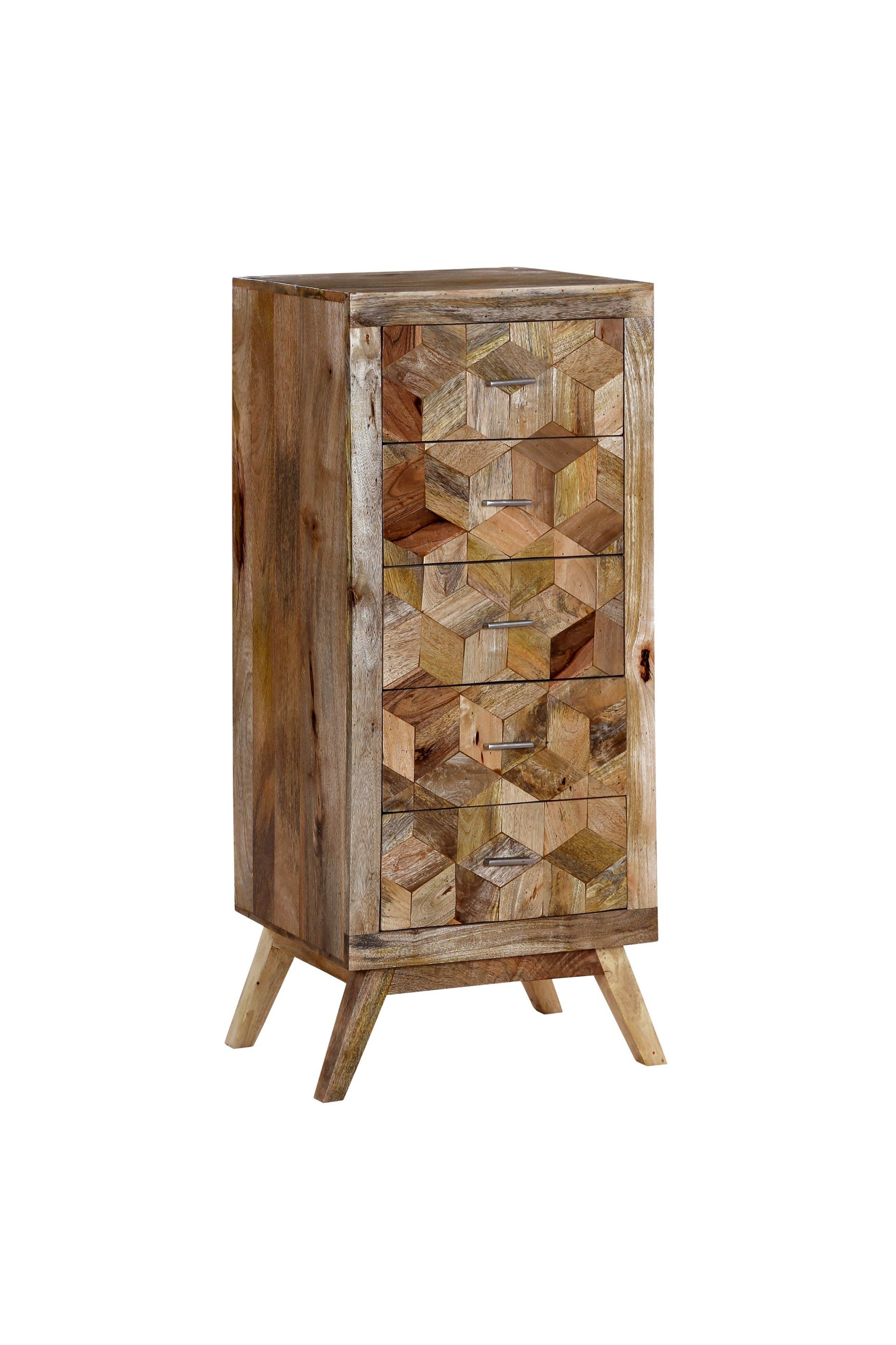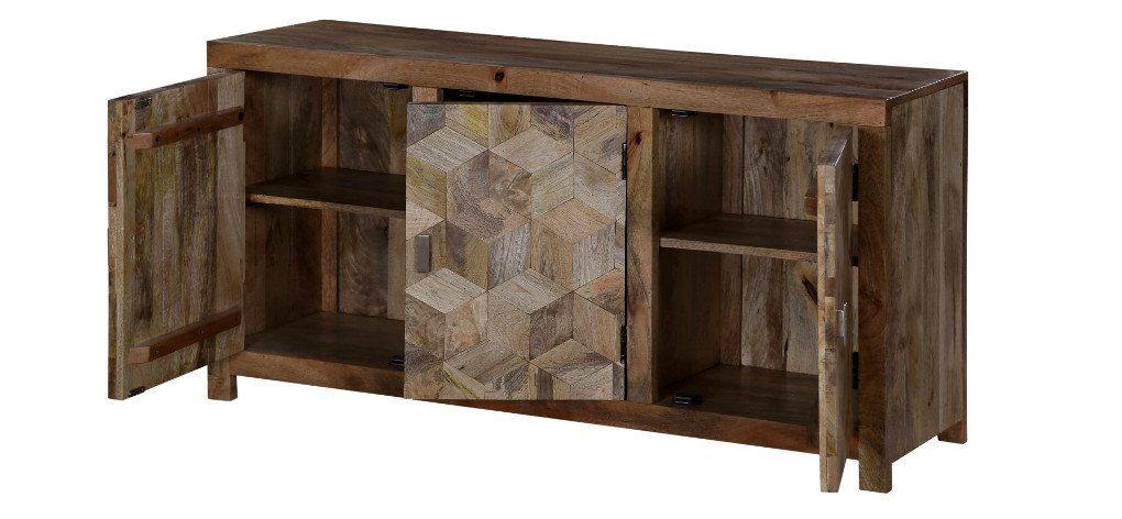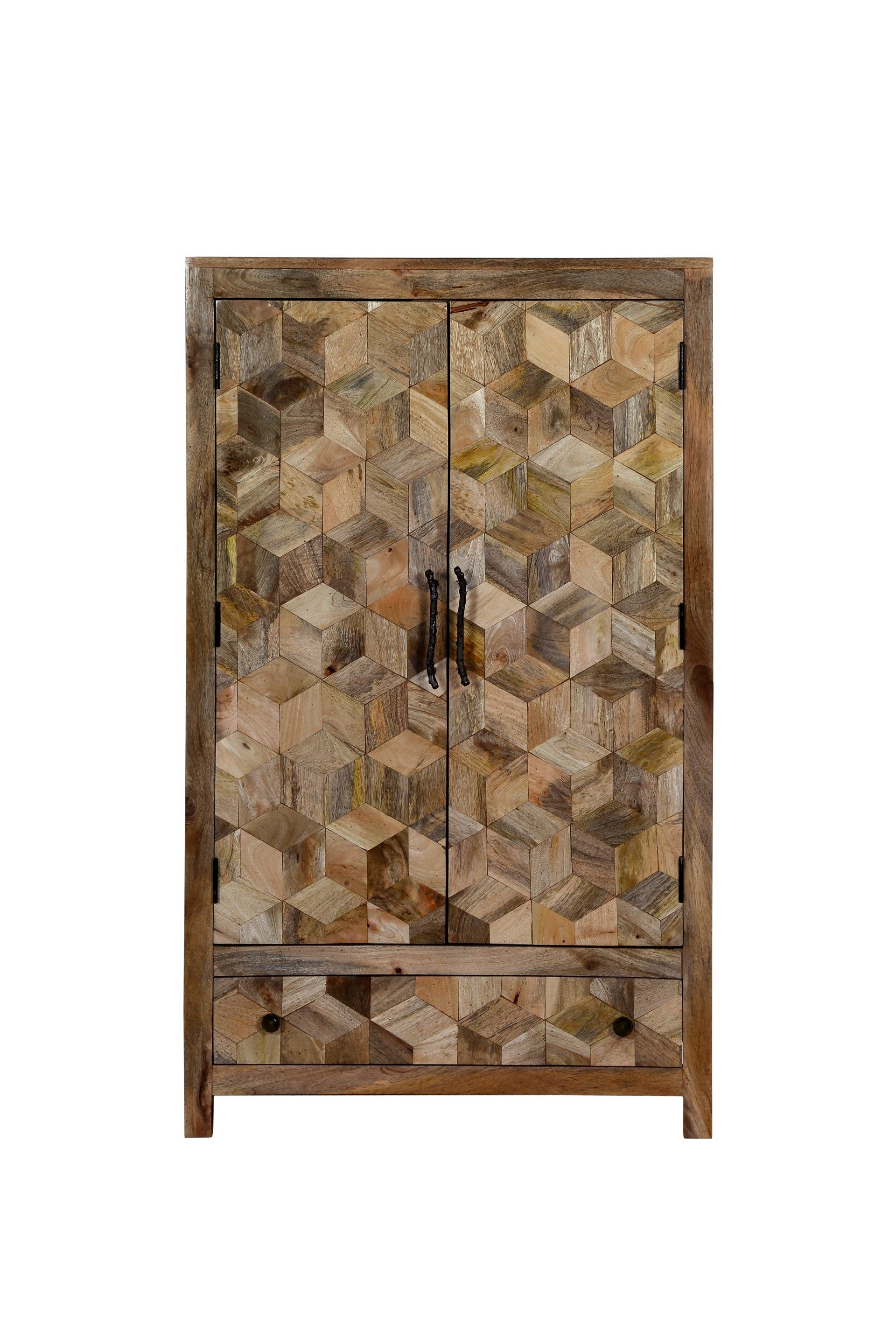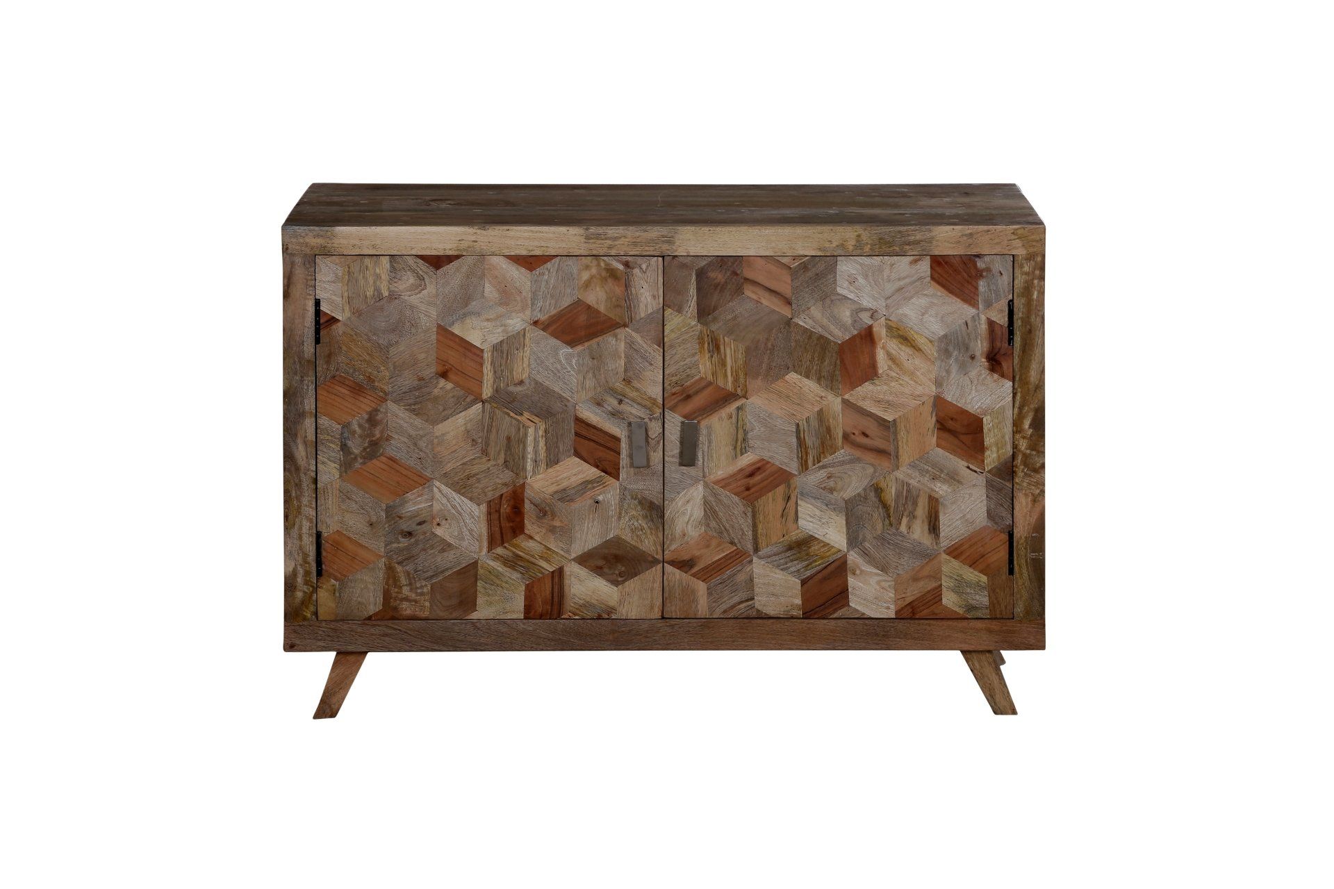 This is solid wood with front covers are crafted with hexa patterns and combination of red shade wood and natural wood make this range more attractive